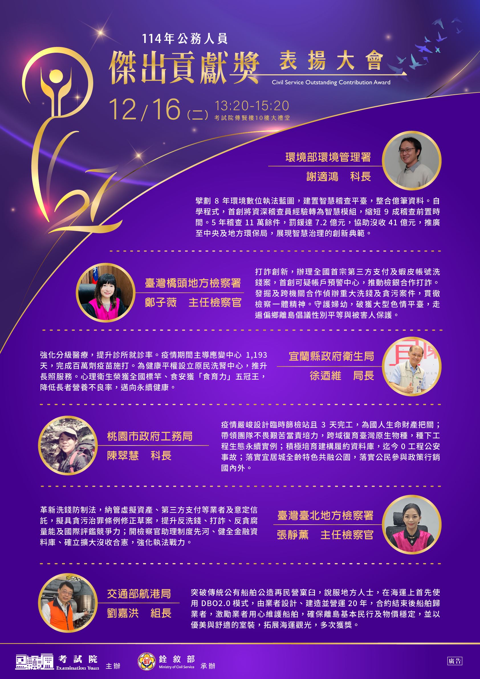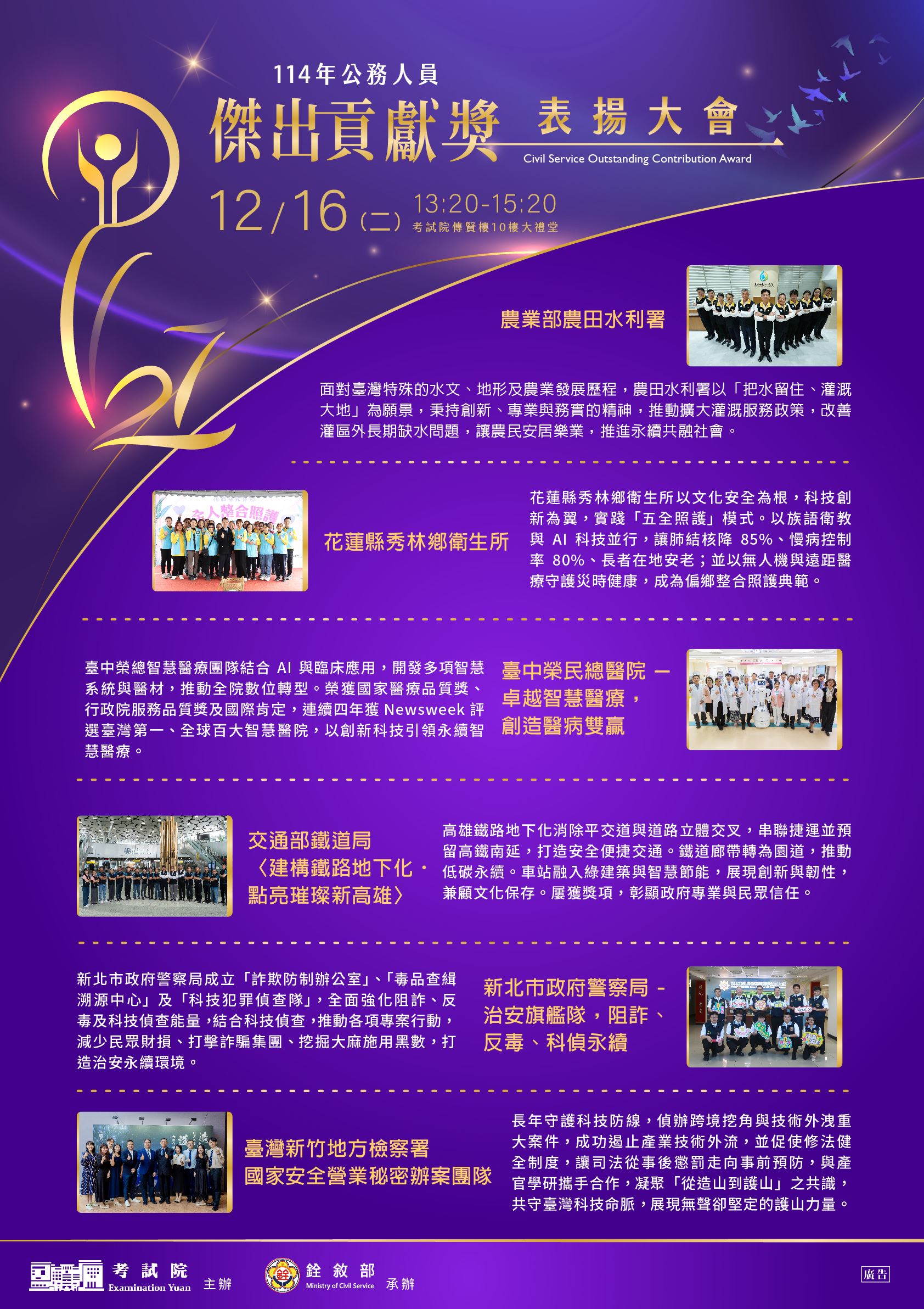 公告有關「114年公務人員傑出貢獻獎表揚大會」電子海報,請查照。